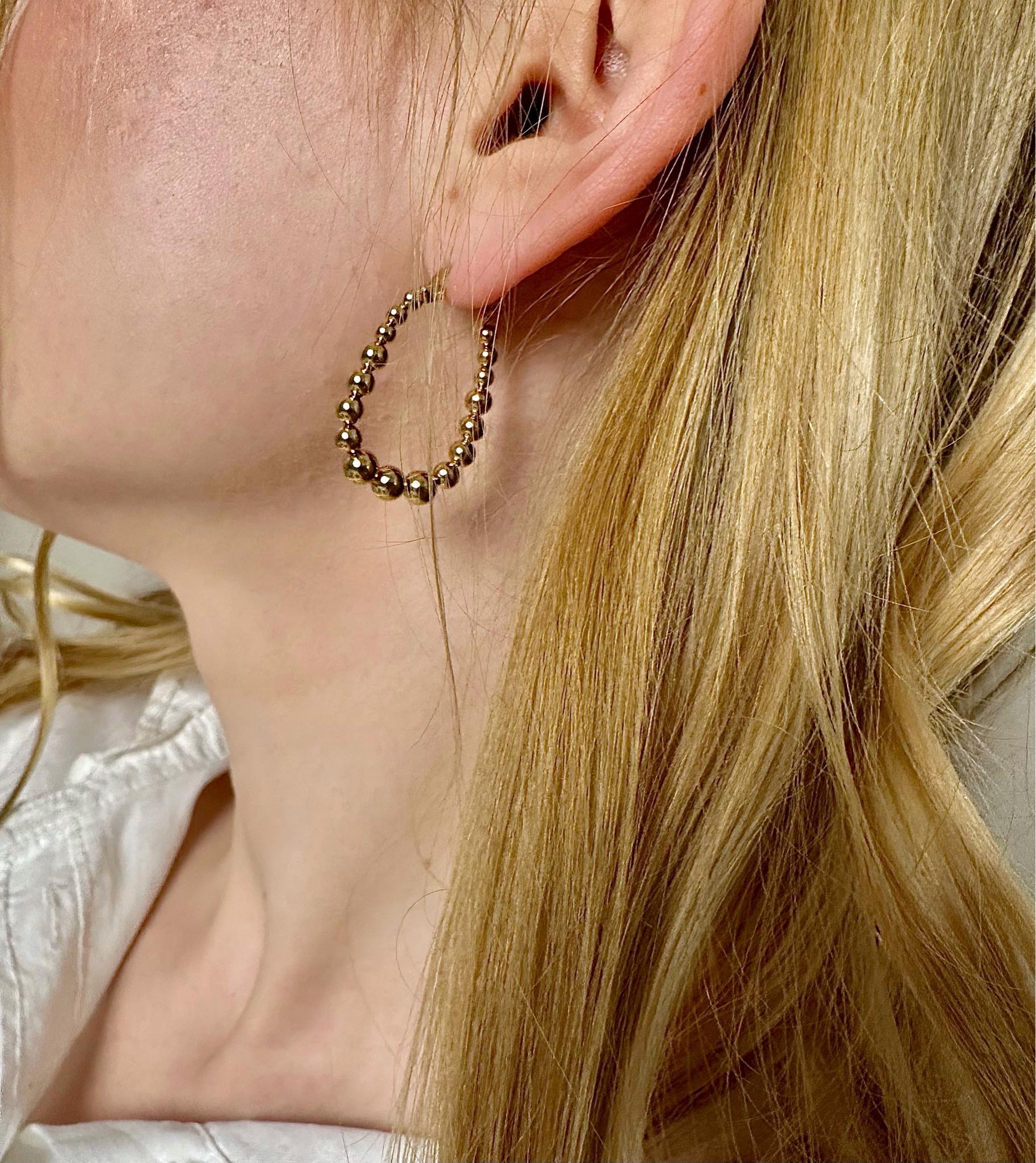 Złoty kolor nadaje kolczykom elegancki i luksusowy wygląd, który doskonale pasuje do różnorodnych stylizacji, zarówno codziennych, jak i bardziej formalnych. Klasyczny kształt koła sprawia, że kolczyki są uniwersalnym dodatkiem, który nigdy nie wychodzi z mody.