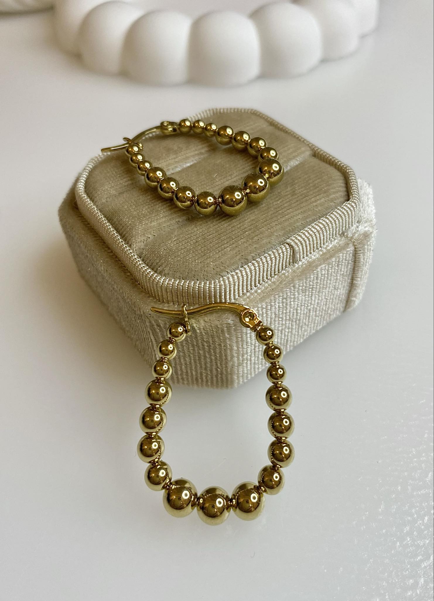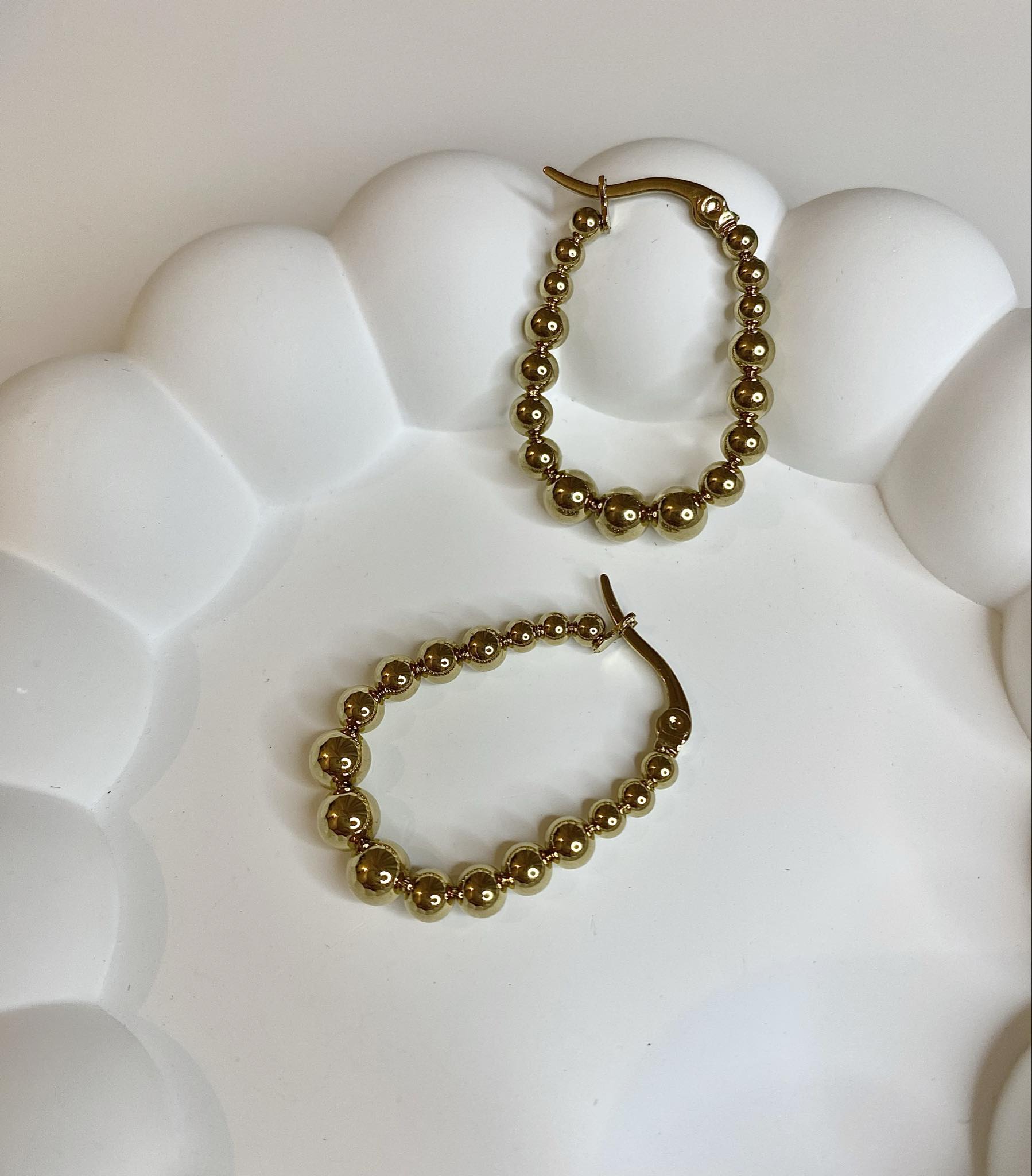 Eleganckie owalne kolczyki ze stali chirurgicznej, ozdobione subtelnym motywem kuleczek. Te złote kolczyki to kwintesencja stylu i klasy, które dodadzą blasku każdej Twojej stylizacji.